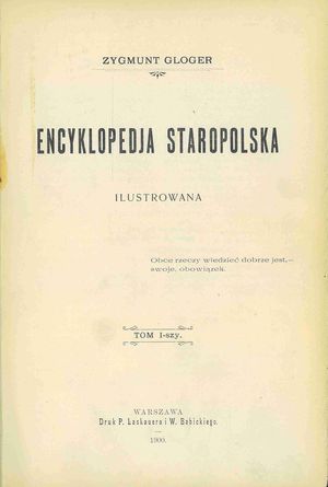 Encyklopedja staropolska ilustrowana. T. 1-3, [A - Pieczęć] / Zygmunt Gloger. - Warszawa : [b.w.], 1900-1902 (Warszawa : Druk. P. Laskauera i W. Babickiego). - 3 t. w 1 wol. ([4], 316 s. ; [2], II, 332 s. ; [2], 350 s.) : il., err. ; 26 cm.