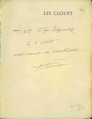 Les Clouet / par Armand Fourreau. - Paris : Les Éditions Rieder et Cie, 1929 (Nogent-le-Rotrou : Daupeley-Gouverneur ; Cachan : Société de Gravure et d'Impression d'Art). - 64 s., 60 s. tabl. heliogr. ; 20 cm.
