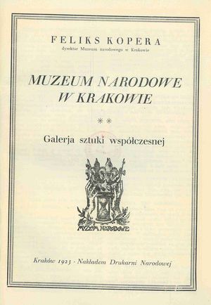 Galerja sztuki współczesnej / Feliks Kopera. - Kraków : nakł. Druk. Narodowej, 1923 (Kraków : Druk. Narodowa). - 15 s., 144 tabl. ; 26 cm.