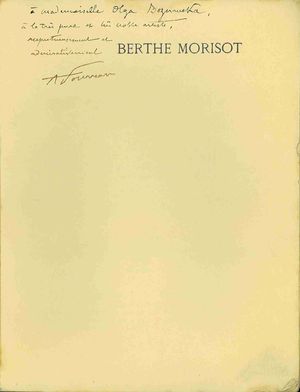 Berthe Morisot / par Armand Fourreau. - Paris : F. Rieder et Cie, 1925 (Abbeville (Somme) : F. Paillart Cachan : Société de gravure et d'impression d'art). - 63 s., 40 k. tabl. heliogr. ; 21 cm.