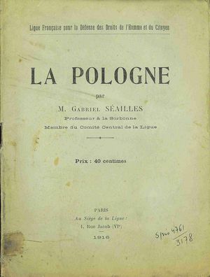 La Pologne / Gabriel Séailles. - Paris : Au Siége de la Ligue, 1916 (Paris : Productrice). - 32 s. ; 18 cm.