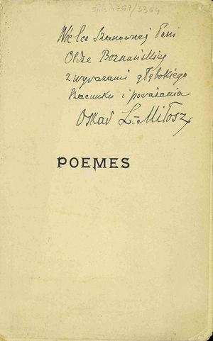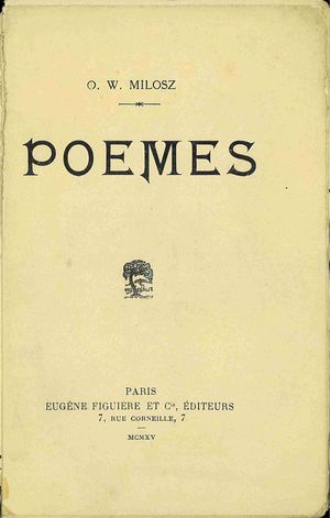 Poèmes / O. W. Milosz. - Paris : Eugène Figuière et Cie, 1915 (Coulommiers : Imprimerie Dessaint et Cie). - 301 s. ; 19 cm.