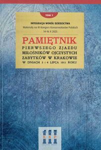 Zawiera m.in. przedr.: Pamiętnik Pierwszego Zjazdu Miłośników Ojczystych Zabytków w Krakowie w dniach 3 i 4 lipca 1911 roku. - Nakład Grona Konserwatorów Galicyi Zachodn., 1912.