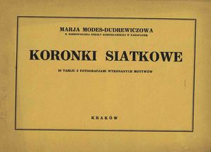 Koronki siatkowe / Marja Modes-Dudrewiczowa. - Kraków : nakładem autorki, 1934 (Kraków : W. L. Anczyc i Spółka). - 10, [1] s., 29 k. tabl. : il. ; 17x24 cm.