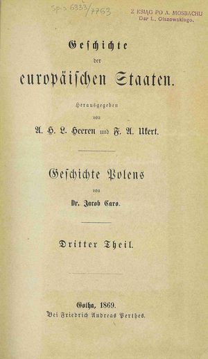 Geschichte Polens. T. 3, 1386-1430 / von Jacob Caro. - Gotha : bei Friedrich Andreas Perthes, 1869 (Gotha : Berthe's Buchdruckerei). - XIV, 657, [1] s. : err. ; 22 cm.