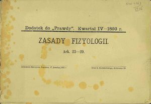 Zasady fizyologii : ark. 23-29 / [T. H. Huxley ; w oprac. J. Rosenthala ; z ostatniego wyd. przeł. Rozalija Nusbaum]. - Warszawa : Druk. K. Kowalewskiego, [1893] (Warszawa : Druk. K. Kowalewskiego). - S. [2], 353-463, [1] : il. ; 21 cm.