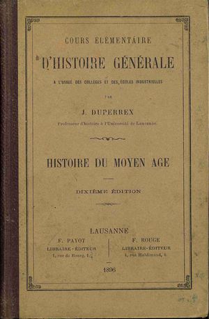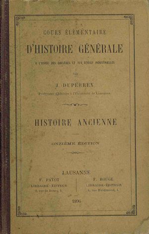Histoire ancienne / par J. Duperrex. - 11ème éd. - Lausanne : F. Payot : F. Rouge, 1896 (Lausanne : Impr. Ch. Viret-Genton). - [10], 248 s. ; 18 cm.