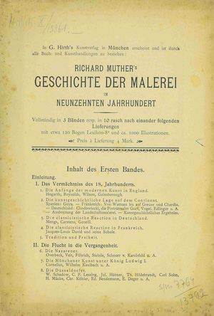 Geschichte der Malerei im XIX. Jahrhundert. Bd. 3 / von Richard Muther. - München : G. Hirth's Kunstverlag, 1894 (München : Knorr und Hirth). - IX, 757 s. : il. ; 26 cm.