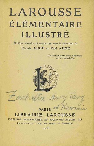 Nouveau Larousse illustré : dictionnaire universel encyclopédique. T. 1 : [A - Bello] / publ. sous la dir. de Claude Augé. - Paris : Librairie Larousse, [1898] (Paris : Impr. Larousse). - [6], 832, [4] s., [18] s. tabl. (w tym kolor.) : il. ; 32 cm.