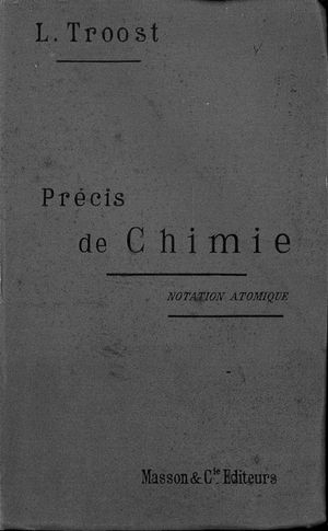 Précis de chimie : avec 291 figures dans le texte / par L. Troost. - 31. éd. appendice d'analyse volumétrique. - Paris : Masson et Cie, 1898 (Paris : Imp. Lahure). - [4], 380 s. : il. ; 19 cm.