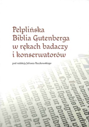 Raczkowski Juliusz (1975- ). Red. Bogusz Marcin (historia). Rozwleczona rewolucja. Pierwsze dekady książki drukowanej Chlebus Ewa. Oprawa Pelplińskiej Biblii Gutenberga. Technika wykonania, dekoracja oraz identyfikacja warsztatu Czuczko Jolanta. Badania materiałoznawcze drogą do rozpoznania i diagnozy konserwatorskiej Pelplińskiej Biblii Gutenberga Czuczko Jolanta. Realizacja prac konserwatorskich-restauratorskich Pelplińskiej Biblii Gutenberga w kontekście przyjętych założeń projektu Czuczko Jolanta. Warsztat i technika wykonania Pelplińskiej Biblii Gutenberga. Wybrane zagadnienia Feddek Krystian Jan. Opactwo pelplińskie i stolica diecezji - szkic Gmińska-Nowak Barbara. Co mówią deski? O dendrochronologicznych badaniach okładzin Pelplińskiej Biblii Gutenberga Jutrzenka-Supryn Dorota. Badania materiałoznawcze drogą do rozpoznania i diagnozy konserwatorskiej Pelplińskiej Biblii Gutenberga Jutrzenka-Supryn Dorota. Oprawa Pelplińskiej Biblii Gutenberga. Technika wykonania, dekoracja oraz identyfikacja warsztatu Jutrzenka-Supryn Dorota. Realizacja prac konserwatorskich-restauratorskich Pelplińskiej Biblii Gutenberga w kontekście przyjętych założeń projektu Komsta-Sławińska Karolina. Realizacja prac konserwatorskich-restauratorskich Pelplińskiej Biblii Gutenberga w kontekście przyjętych założeń projektu Komsta-Sławińska Karolina. Warsztat i technika wykonania Pelplińskiej Biblii Gutenberga. Wybrane zagadnienia Piasecka Arletta. Oprawa Pelplińskiej Biblii Gutenberga. Technika wykonania, dekoracja oraz identyfikacja warsztatu Piasecka Arletta. Realizacja prac konserwatorskich-restauratorskich Pelplińskiej Biblii Gutenberga w kontekście przyjętych założeń projektu Raczkowski Juliusz (1975- ). Co mówią deski? O dendrochronologicznych badaniach okładzin Pelplińskiej Biblii Gutenberga Raczkowski Juliusz (1975- ). Pelplińska Biblia Gutenberga. Historia - znaczenie - badania i digitalizacja Sroka Joanna. Realizacja prac konserwatorskich-restauratorskich Pelplińskiej Biblii Gutenberga w kontekście przyjętych założeń projektu