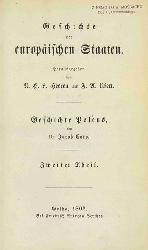 Geschichte Polens. T. 3, 1386-1430 / von Jacob Caro. - Gotha : bei Friedrich Andreas Perthes, 1869 (Gotha : Berthe's Buchdruckerei). - XIV, 657, [1] s. : err. ; 22 cm.