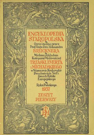 Encyklopedia staropolska. [T. 1-2] / opracowana przez Aleksandra Brücknera. - Warszawa : nakładem Księgarni Wydawniczej Trzaski, Everta i Michalskiego, 1937-1939. - 2 t. w 1 wol. (956 szp., [4] k. tabl. (w tym kolor.) ; 960 szp., [2] k. tabl. kolor.) : il. ; 29 cm.